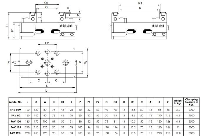 - Maximum Clamping Pressure 5000 Kg. approximate.