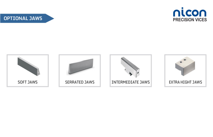 - Four extra tapped holes with ground back jaw rear face increase maximum opening capacity with the addition of jaws extensions.