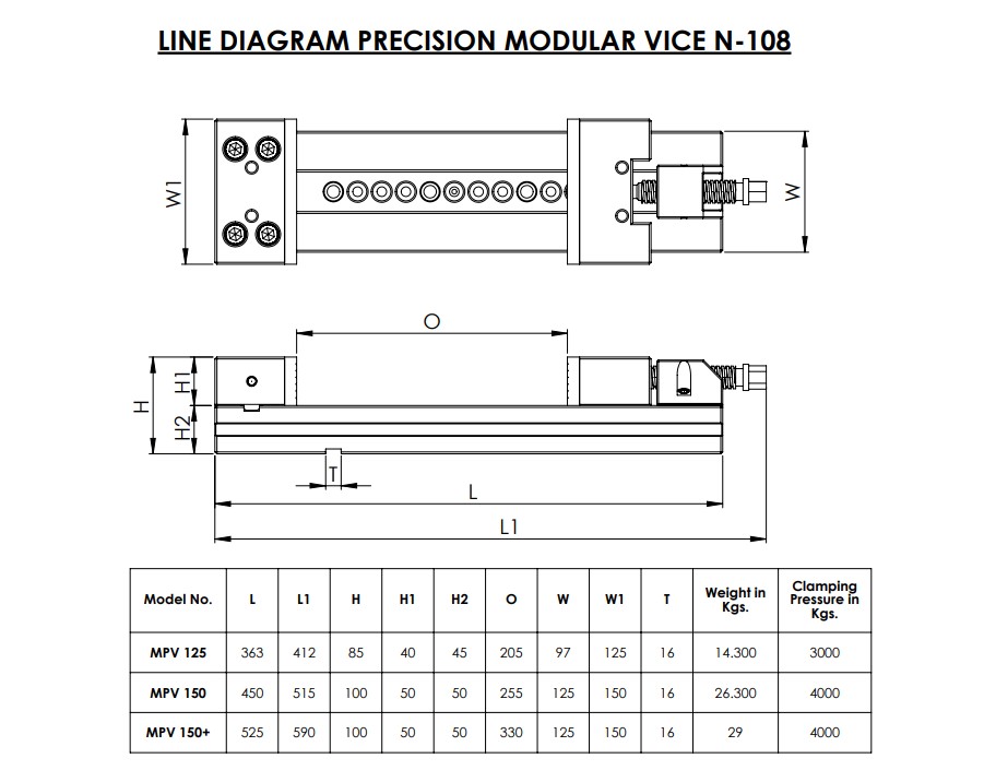 - Four extra tapped hole in moving and fixed rear blocks in front and top for optional jaws and fixtures.